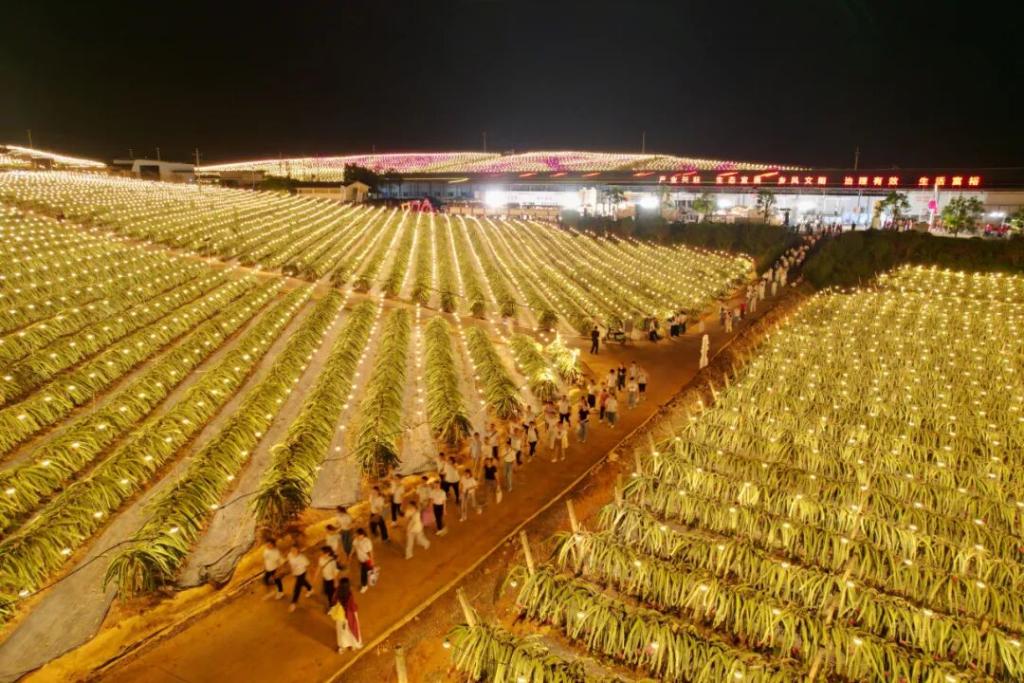 火龙果产业示范基地“万亩星河”首次点灯仪式燃爆现场氛围,火龙大市集汇聚精彩好物,全面展示广西乡村旅游发展成果,释放多样化、品质化、差异化消费潜力。