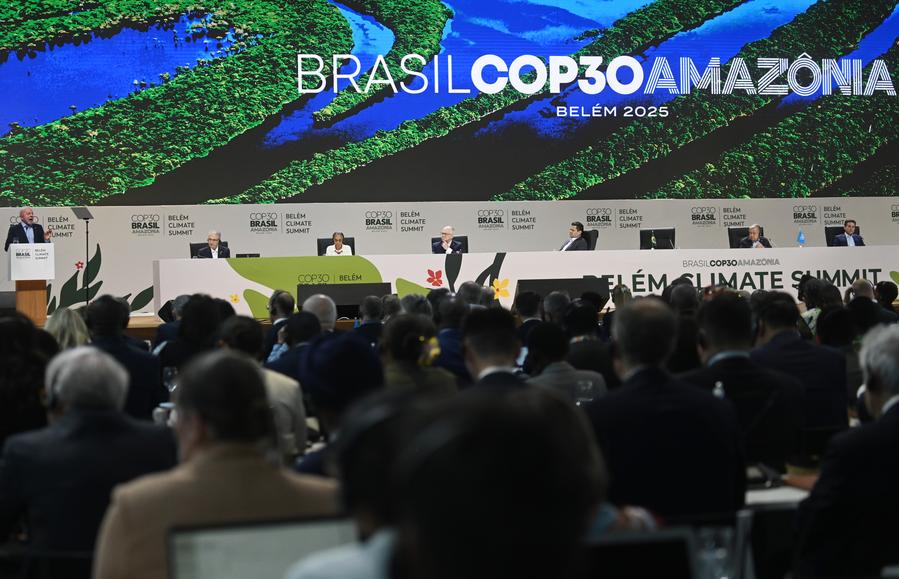 Participants attend the Belem Climate Summit ahead of the 30th Conference of the Parties (COP30) of the United Nations Framework Convention on Climate Change in Belem, Brazil, Nov. 6, 2025. (Photo by Lucio Tavora/Xinhua)