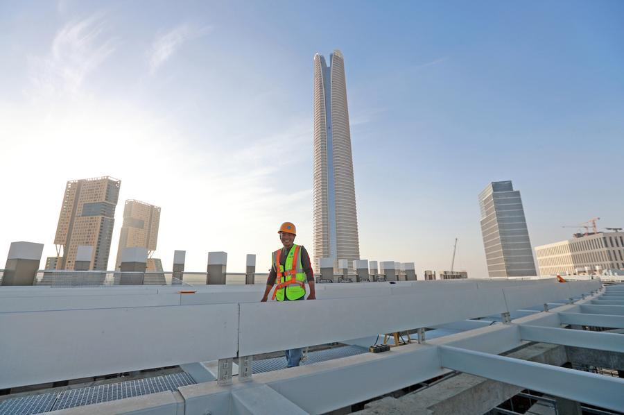 A Chinese worker is seen at the construction site of the Central Business District (CBD) of Egypt's new administrative capital, 45 kilometers east of Cairo, Egypt, Nov. 22, 2023. (Xinhua/Sui Xiankai)
