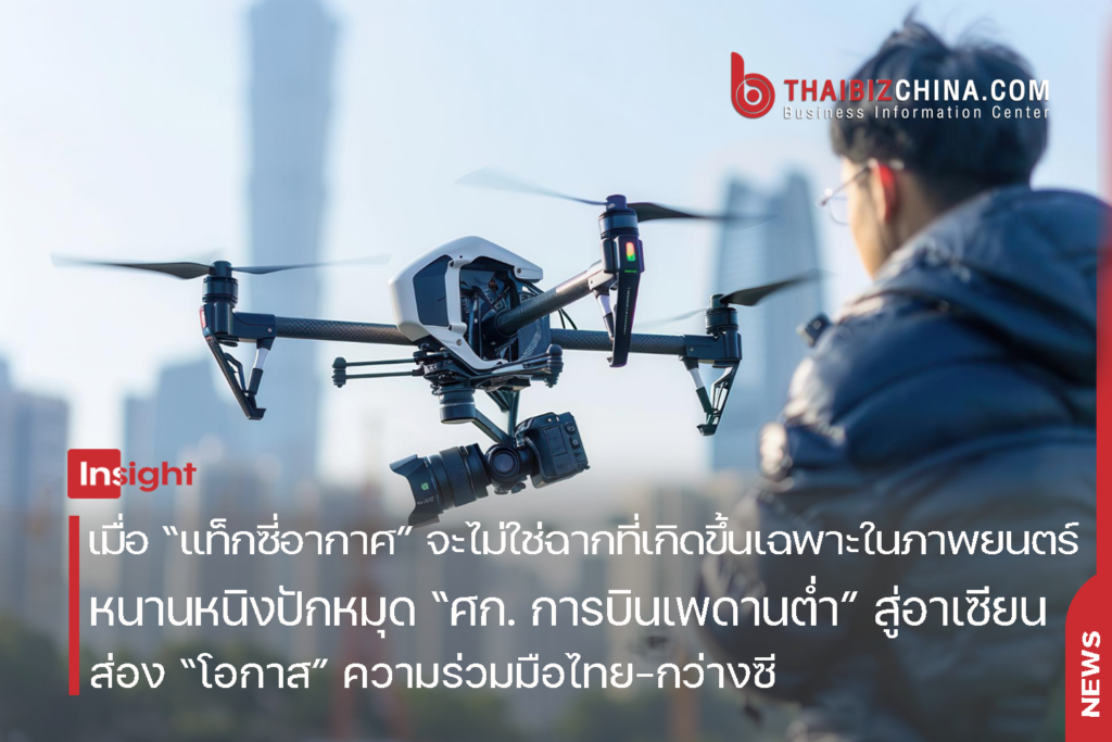 รัฐบาลจีนมองอุตสาหกรรมโดรนเป็น “จิ๊กซอว์” ชิ้นสำคัญใน “เศรษฐกิจการบินเพดานต่ำ” เป็นอุตสาหกรรมเกิดใหม่ที่เน้นการใช้ประโยชน์จากน่านฟ้าในระดับต่ำกว่า 3,000 เมตร เพื่อสนับสนุนกิจกรรมทางเศรษฐกิจการค้าและการบริการต่าง ๆ โดยปี 2566 รัฐบาลจีนได้เริ่มปฏิรูปการจัดการน่านฟ้าระดับต่ำ (กฎระเบียบที่เกี่ยวข้อง) ให้มีความยืดหยุ่นมากขึ้นเพื่อสนับสนุนและสร้างสมดุลให้กับการพัฒนาของธุรกิจ/อุตสาหกรรมโดรนในประเทศจีน