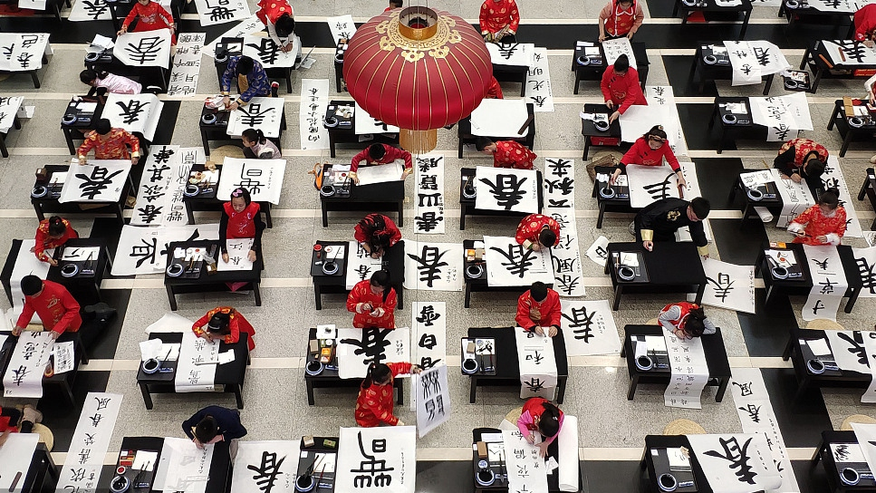 Trẻ em Trung Quốc và nước ngoài tham gia một cuộc thi viết thư pháp