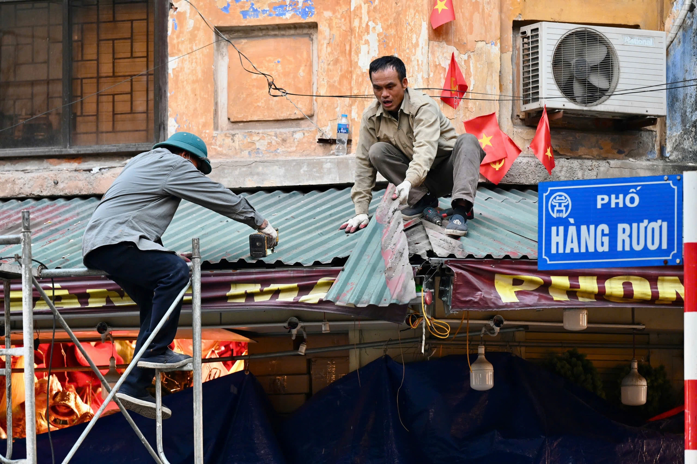 Nhiều hộ kinh doanh, gia đình có mặt tiền trên phố tháo gỡ phần mái che tạm thời nhằm đảm bảo an toàn phòng cháy chữa cháy, mỹ quan đô thị.