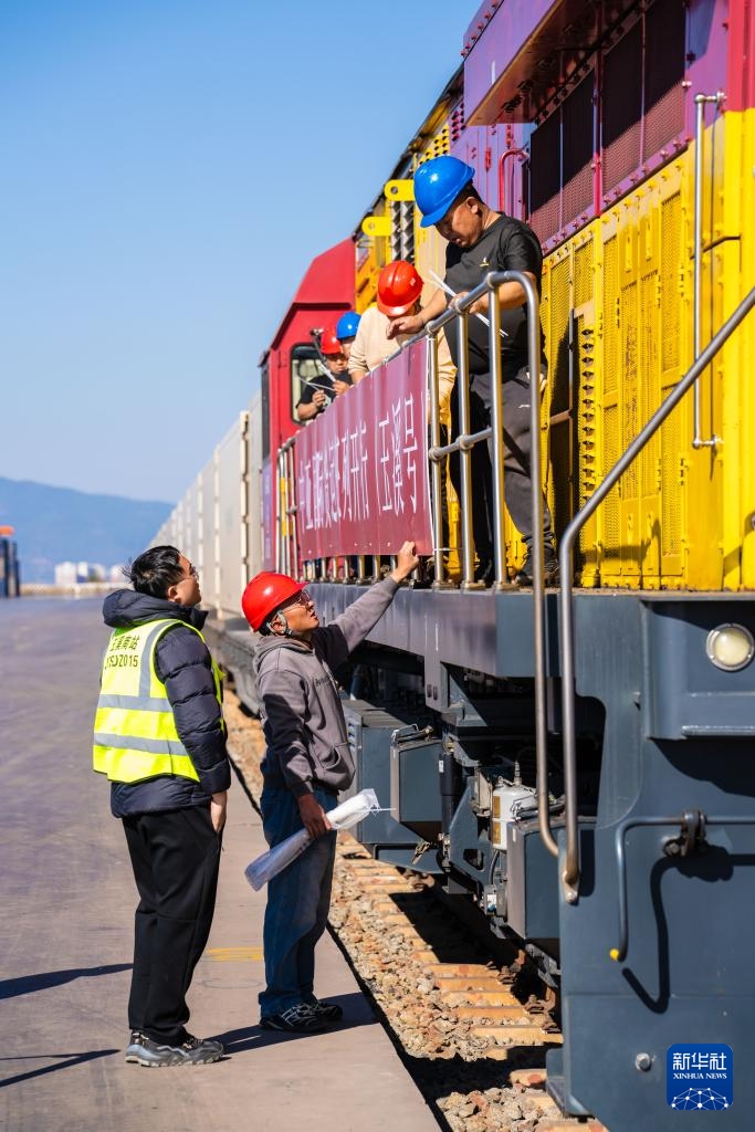 Ngày 26 tháng 1, tàu chở hàng quốc tế Trung Á trên tuyến đường sắt Trung - Lào khởi hành từ ga Nghiên Hòa, thành phố Ngọc Khê, tỉnh Vân Nam, Trung Quốc.